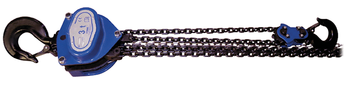 WLL Number of parts Standard lifting height Force on control chain at full load Load chain Hand chain Weight with chain Weight chain extra mtr